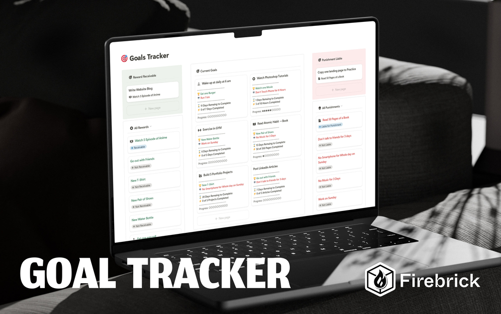 The Goals Tracker Notion template helps you stay consistent with your tasks through a gamified Reward & Punishment system. Track progress, earn rewards, and hold yourself accountable—making goal achievement fun, effective, and balanced! Take charge of your goals today! 🚀